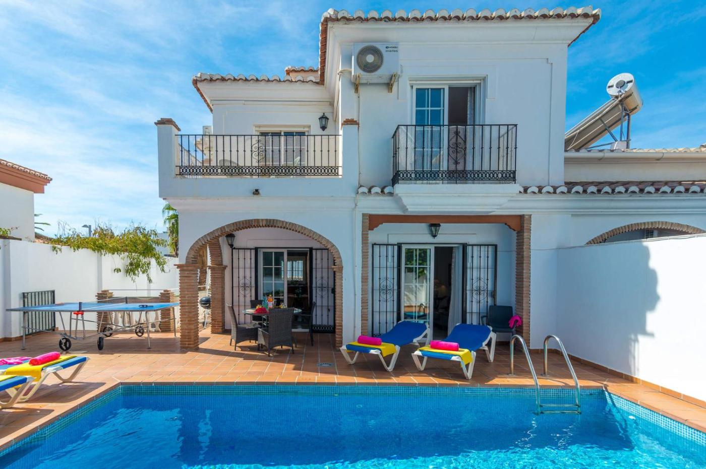 In the centre of Nerja, located within a short distance of Playa Carabeillo and Balcony of Europe, Nerja Paradise Rentals - Villa Las Palomas offers free WiFi, air conditioning and household amenities such as a dishwasher and coffee machine. With pool views, this accommodation offers a balcony and a swimming pool. There is free private parking and the property provides paid airport shuttle service.