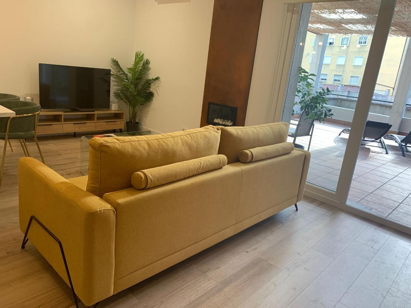 Two-Bedroom Apartment. The fireplace is a top feature of this apartment. Boasting a private entrance, this air-conditioned apartment comes with a kitchen, 2 bedrooms and 2 bathrooms with a walk-in shower and a hairdryer. Meals can be prepared in the kitchen, which features a stovetop, a refrigerator, a dishwasher and kitchenware. Featuring a terrace with city views, this apartment also features a washing machine and a flat-screen TV. The unit has 2 beds.