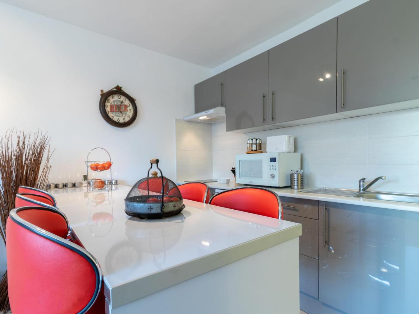 Apartment. Featuring 3 bedrooms and 1 bathroom with a shower, this apartment offers a well-fitted kitchen and a terrace. The well-fitted kitchen features a stovetop, a refrigerator, a dishwasher and kitchenware. Boasting outdoor furniture, this apartment also provides air conditioning, a washing machine and a TV. The unit has 3 beds.